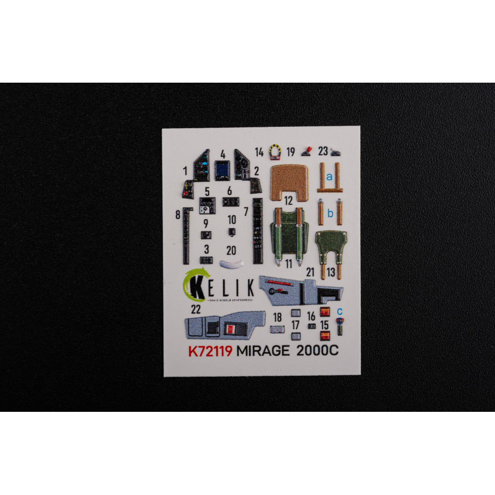 A set of details for a scale model Mirage 2000C interior 3D decals for ModelSvit kit 1/72 Kelik K72119